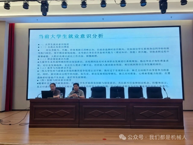 为帮助2025年岗位实习学生更好地了解行业动态及就业形势,树立正确的实习就业观,6月12日下午,学院招生就业处联合机械工程系举办学生职业指导大会。本次大会由招生就业处处长梁延政主讲。