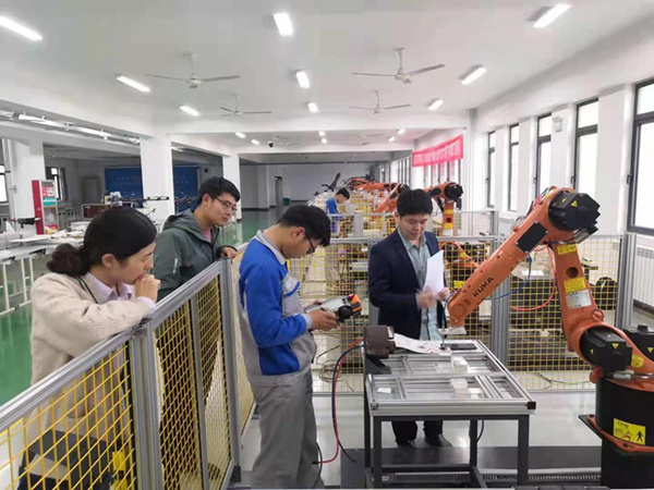 4月21日下午,机器人实训室开展了别开生面的机器人搬运物料码垛比赛。本次机器人比赛分为理论和实操两部分组成,理论部分有五百余道三种类型的题目。今天下午的实操比赛则是数十台机器人同时开工,同学们分别使用机器人进行码垛编程,十分钟内同学们要确定工件坐标系原点,编程以及告诉机器人每一次坐标点的位置,在这些工作的基础上,同学们要更多的让机器人码更多的物料,规定时间内搬运的物料越多,得分越高。参观的老师都惊叹如此短的时间内竟然可以完成这么多工作,这是一场比赛,更是一个展示的平台,展示的是同学们的学习成果,也是老师教学的一份完美答卷!
