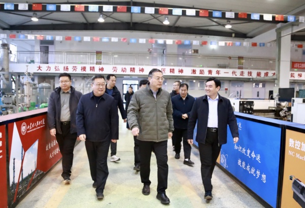 高峰一行车览新校区、山东省化工应急救援实训基地,实地参观了机械工程系实训室、山东省化工生产安全实训基地、化工生产实训中心和世界技能大赛化学实验室技术项目中国集训基地。