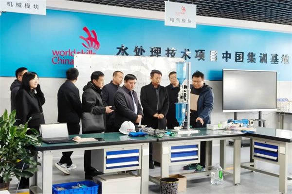 伊文涛一行实地参观了河南化工技师学院的化工单元实训场地、己内酰胺智能化工生产实训中心、开封市电子显微镜博物馆、公共安全体验馆、世界技能大赛中国集训基地。与河南化工技师学院党委书记李光勇,副校长于海、朱登朝等领导就制度建设、教育教学、一体化课程改革、技能竞赛成果转化、招生就业、校企合作产教融合、思政课堂建设等方面工作进行了座谈交流,双方相互分享了具体举措和工作经验,并就下一步校际深度合作达成一致意向。