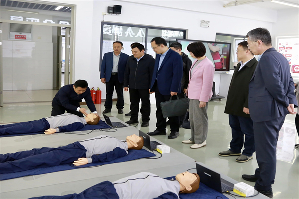 赵琪一行在专业教师的讲解下,实地参观化工装备综合实训室、世界技能大赛化学实验室技术项目中国集训基地、山东省化工生产安全实训基地和化工生产实训中心,并车览了应急救援实训基地。
