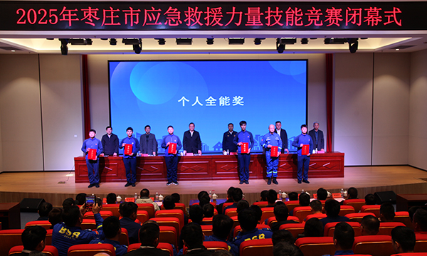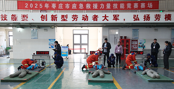 11月29日—30日,2025年枣庄市应急救援力量技能竞赛在山东化工技师学院举行。此次应急救援力量“大练兵”共吸引了3支专业救援力量和11支社会救援队伍同台竞技,经过心肺复苏模拟救人、受限空间救援、止血包扎固定搬运、理论考试四个赛项的激烈技能比拼和严格的综合评判,山东省危险化学品鲁南安全生产应急救援中心获得团体一等奖,郭欣庆、刁宗添等六名参赛选手获得个人全能奖。