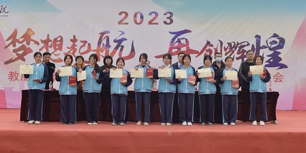 与会教务处、学生处、德育处领导和系部领导为2022级优秀学员、19级优秀毕业生、星级宿舍代表、教服系参加2021、2022年两届山东省“技能兴鲁”职业技能大赛获奖选手颁奖!