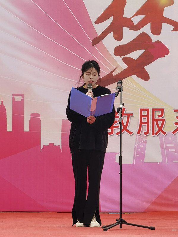 联欢会第二项是22级新生代表栗玉婷发言;第三项毕业生代表徐士菊发言;第四项是教服系师主任发言。她鼓励学生要珍惜时间,好好学习和磨炼,要学会总结和反思,要严于律己,树立规范意识,要学会宽容、沟通与合作。师主任嘱托孩子们要做胸怀大志并脚踏实地的人,做德才兼备并勇于创新的人,做富有责任并敢挑重担的人,用汗水见证成长,用奉献丈量价值,珍惜青春,时不我待,锐意进取,在青春的舞台上展现亮丽而独特的风采!