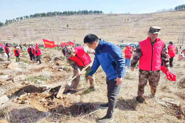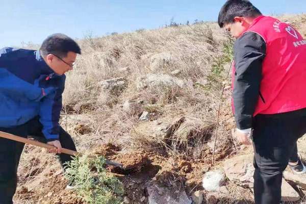 在活动现场,大家严格按照植树活动要求和标准,认真完成每一道工序,大家挥锹铲土、扶树填坑、提桶浇水……干劲十足,每道工序都认真细致、有条不紊,到处一片热火朝天的景象。经过大家辛勤劳作,小树在和煦的春风中焕发生机勃勃,小小山丘新添了一抹绿意。