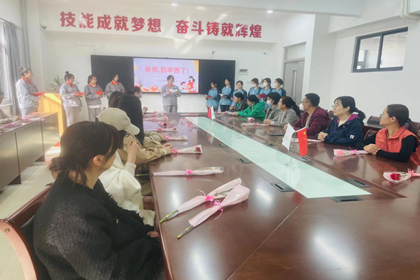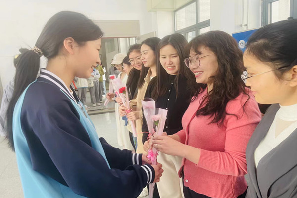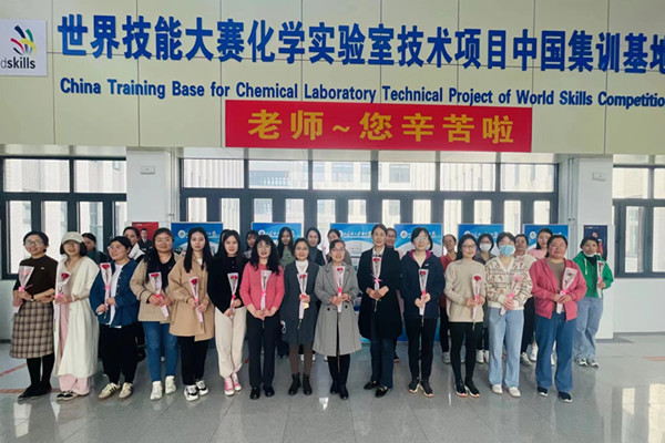 春临盛世三月天,姹紫嫣红映红颜。2023年3月8日上午,为庆祝第113个“三八”国际妇女节,弘扬尊师重道的校园风气,让女教师们过一个快乐、难忘、有意义的节日,工业分析与检测系和教育与公共服务系团总支联合开展“鲜花献老师  桃李感师恩”感恩活动。分析系党支部书记周可、教服系党支部书记师友伟、分析系主任杨明明及两系教职工一起参加了活动。