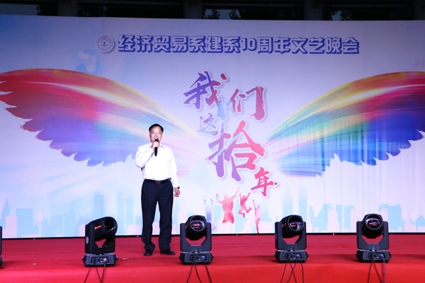 演出开始,学院党委书记孙晋东同志回顾了经济贸易系十年发展历程,鼓励师生继续努力,以十周年系庆为新的起点,确立更高的目标追求,继续为学院发展添砖加瓦,为社会培养更过高素质技能人才。