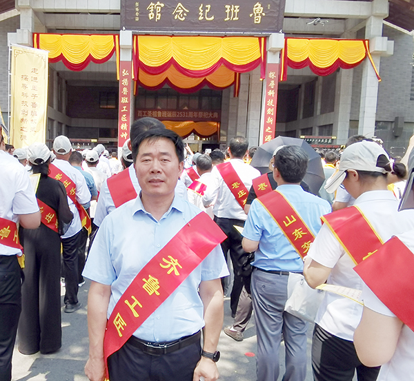 我院教师“齐鲁工匠”获得者马洪光与国内外专家学者、工会代表一同参加纪念“工匠祖师”“百工圣祖”鲁班诞辰2531周年大典。践行传承弘扬鲁班精神、厚植人文情怀、凝聚民族自豪感和文化自信心。
