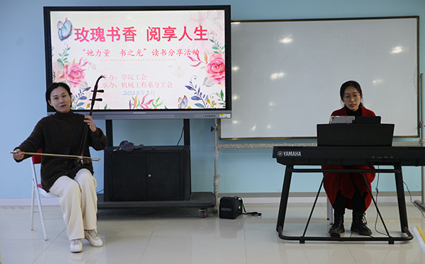 现场,机械工程系男教师代表朗诵诗歌《钢铁与玫瑰的赋格》,致敬“她力量”;集体开展理论学习,学习习近平关于妇女儿童工作论述摘编内容;各分工会女教师代表分别通过阅读感悟、诗歌朗诵、乐器演奏、角色扮演朗诵等多种形式,进行了多元化的精彩分享展示,大家结合生活经历和情感体验,将文字内涵、人生哲理、娓娓道来,引起大家强烈共鸣,现场掌声不断。