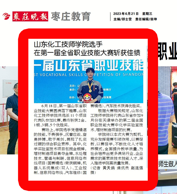 枣庄晚报报道我院选手在第一届山东省职业技能大赛获金牌