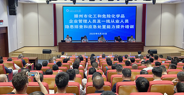 6月16日下午,滕州市化工和危险化学品企业一线从业人员应急处置能力培训班在学院高铁新区校区报告厅开班。