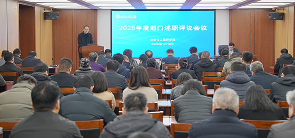 1月16日上午,学院在高铁新区校区多功能厅召开2025年度部门述职评议会议。学院党委书记陆洋、院长伊文涛、党委副书记薛令伟、纪委书记苏友华,副院长段亚锋、朱景洋,党委委员、宣传部部长徐廷国出席会议,中层领导干部、现聘高级职称教师参加会议,会议由院长伊文涛主持。
