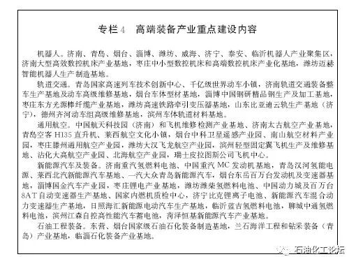 提升集约集聚发展水平。发挥产业基础和资源区位优势,巩固提升我省在国家化工产业战略布局中的地位。在东营、烟台、滨州、潍坊布局建设芳烃、乙烯等一批重大项目,建成国内领先、世界一流的高端石化产业基地。培育淄博、菏泽两大千亿级精深加工产业集群。依托济宁、枣庄、菏泽、泰安、临沂等煤化工产业园,打造鲁南国家级煤化工产业示范基地。依托潍坊、烟台、东营、泰安、滨州、菏泽等盐化工产业园,适度发展食品级、电子级盐化工,打造高端盐化工产业基地。完善化工园区产业升级与退出机制,全面推动散、乱、危、小化工企业进园入区,力争到2022年进园入区比例达到40%左右。利用清洁生产、智能控制等先进技术改造提升现有生产装置,降低消耗,减少排放,提高产品质量和综合效益。