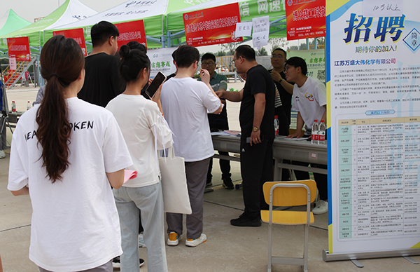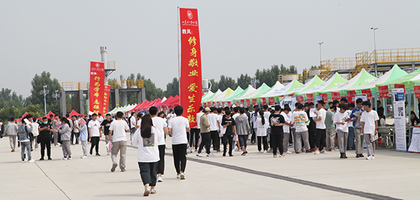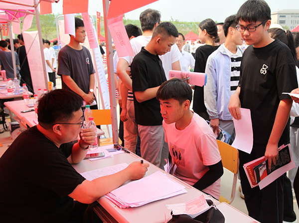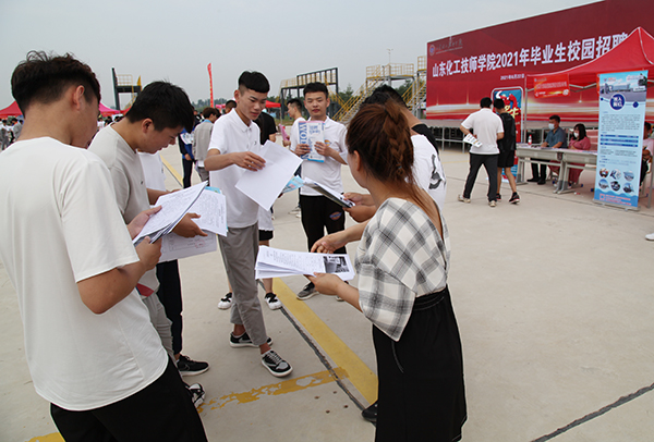 6月22日,山东化工技师学院2021年毕业生校园招聘会在学院路校区和高铁新区校区顺利举行。共有来自全国各地的央企、国企、大型民企等220多家企业参会,提供涉及化工工艺、化工机械维修、智能制造、仪表与自动化、工业分析与检验、汽车维修、电子商务、幼儿教育等专业11000多个岗位供毕业生挑选,供需比例达1:10,再次出现多岗抢1人的火爆场面。