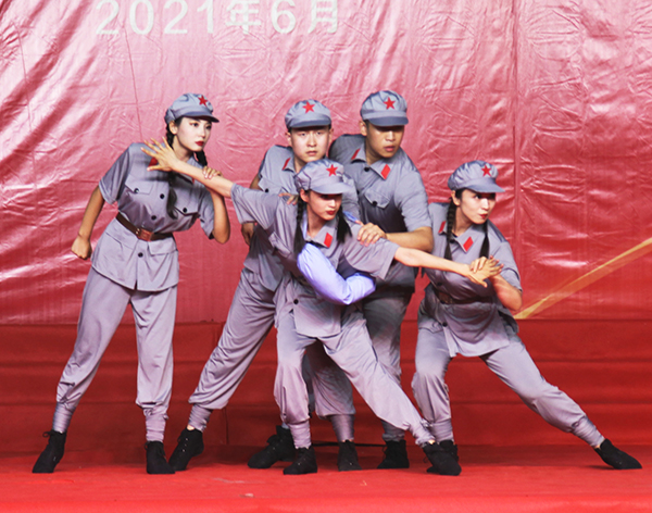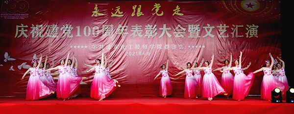文艺汇演在舞蹈《美丽中国》如诗的音乐声中拉开帷幕,师生精心排练的文艺节目——合唱《百年再起航》《中国军魂》《国家》《黄河大合唱》,舞蹈《红船》《映山红》《一盏红油灯》《走出沼泽》《致黄河》《万疆》,诗朗诵《七月的天空》《教师颂》、歌伴舞《强国一代有我在》《唱支山歌给党听》,你方唱罢我登场,大家用自己最擅长的表达方式回顾中国共产党的百年光辉历程,深情讴歌党的百年伟业,坚定理想信念,传承革命精神,展现了学院师生永远跟党走昂扬向上的精神风貌,激发了学院党史学习教育的新活力,向党的百年华诞献礼。