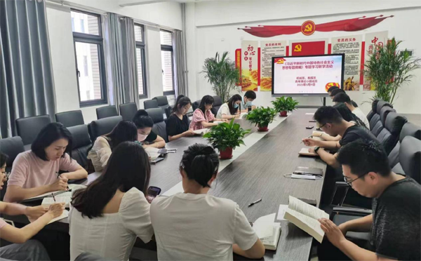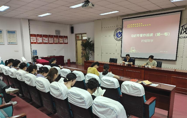 机械工程系党支部联合教育与公共服务系党支部在高铁新区校区教服系党员活动室开展“《习近平新时代中国特色社会主义思想专题摘编》跨组联学”主题教育学习活动,机械系王娜领学第十二章之“绿水青山就是金山银山”;机械系刘馥源领学第八章之“坚定不移走中国特色社会主义政治发展道路”;教服系陈端端领学第十章之“文化兴国运兴,文化强民族强”;教服系王一迪领学第十三章之“统筹发展和安全是我们党治国理政的一个重大原则”。