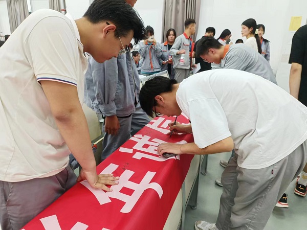 6月27日下午,我院在新校区工艺楼前举行诚信考试签名宣誓活动。此次活动以“以诚为本,诚信考试”为口号,号召同学们在期末考试中自觉遵守考场纪律,杜绝各种作弊行为,文明考风,严肃考纪,诚信考试,诚实做人,营造了浓浓的“诚信考试”氛围。