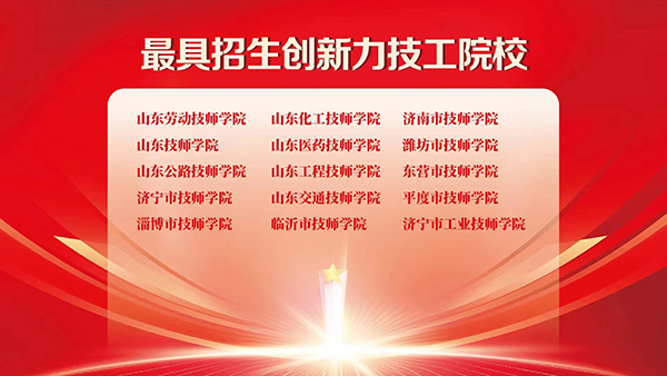 12月8日,2023年山东省技工教育融媒体研讨会在济南举行。会上,根据各技工院校在招生工作和媒体宣传方面,从招生数量和媒体宣传广度、热度、活跃度、美誉度、呈现度等网络传播影响力指数综合评定,发布了2023年度最具招生创新力技工院校、2023年度最具媒体影响力技工院校榜单,我院均榜上有名。