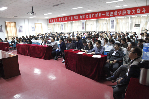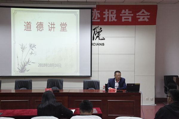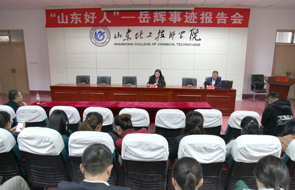 10月16日,学院举办道德讲堂暨“山东好人”—岳辉事迹报告会,全体教职工聆听了报告,报告会由宣传部部长赵莉主持。