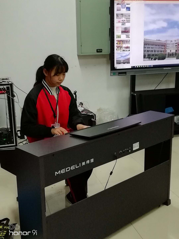 随后,16、17、18级学生代表陆续登台,她们有的利用多媒体课件,向新生们讲述自己的成长经历;有的现场弹奏,展示钢琴技能;有的伴随着优美的旋律,翩翩起舞……