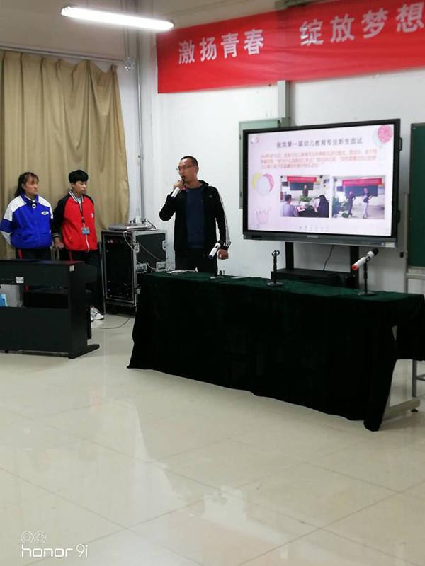 而后,系团支部宣传委员侯成凯老师从幼儿教师的特点、系部活动、系团委活动、系部取得的成果等四个方面向与会新生详细介绍了教育与公共服务系的成长历程。