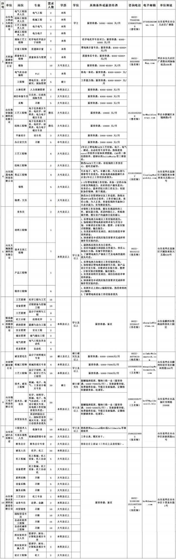 | 2022年“枣庄—高校人才直通车”云招聘岗位信息第一期10家企业60个岗位招聘363人 |
