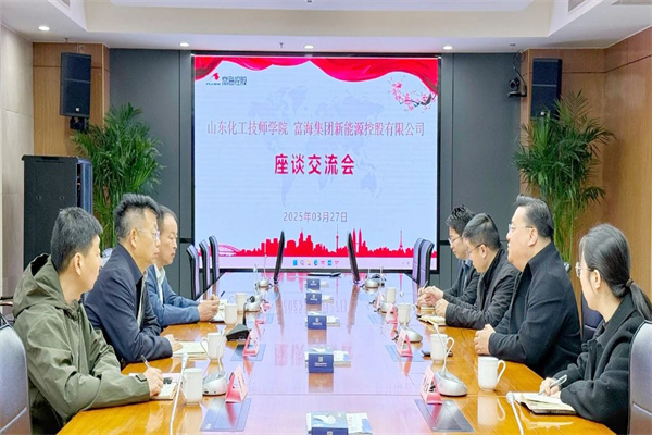 崔世玉一行与富海集团新能源控股有限公司人力行政中心总经理刘勇军座谈交流。招生就业处处长梁延政、副处长李冉参加交流。