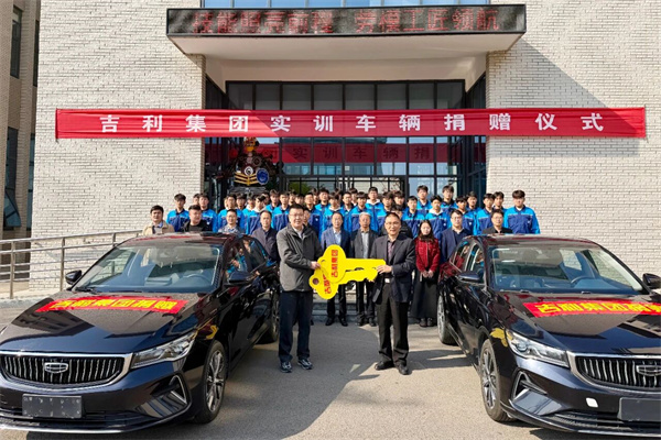 彭林林代表吉利汽车集团向学院赠送了教学实训用车钥匙,汽车工程系师生代表参加捐赠仪式。