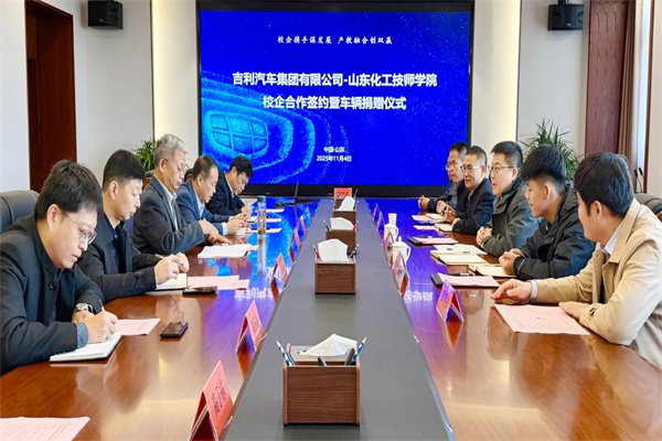 11月4日上午,吉利汽车集团有限公司与山东化工技师学院校企合作签约暨车辆捐赠仪式在图书楼第一会议室举行。吉利汽车集团有限公司长兴公司人才经营部部长彭林林、经理李楠,学院副院长崔世玉出席会议,招生就业处、汽车工程系、化学工程系负责人参加会议。